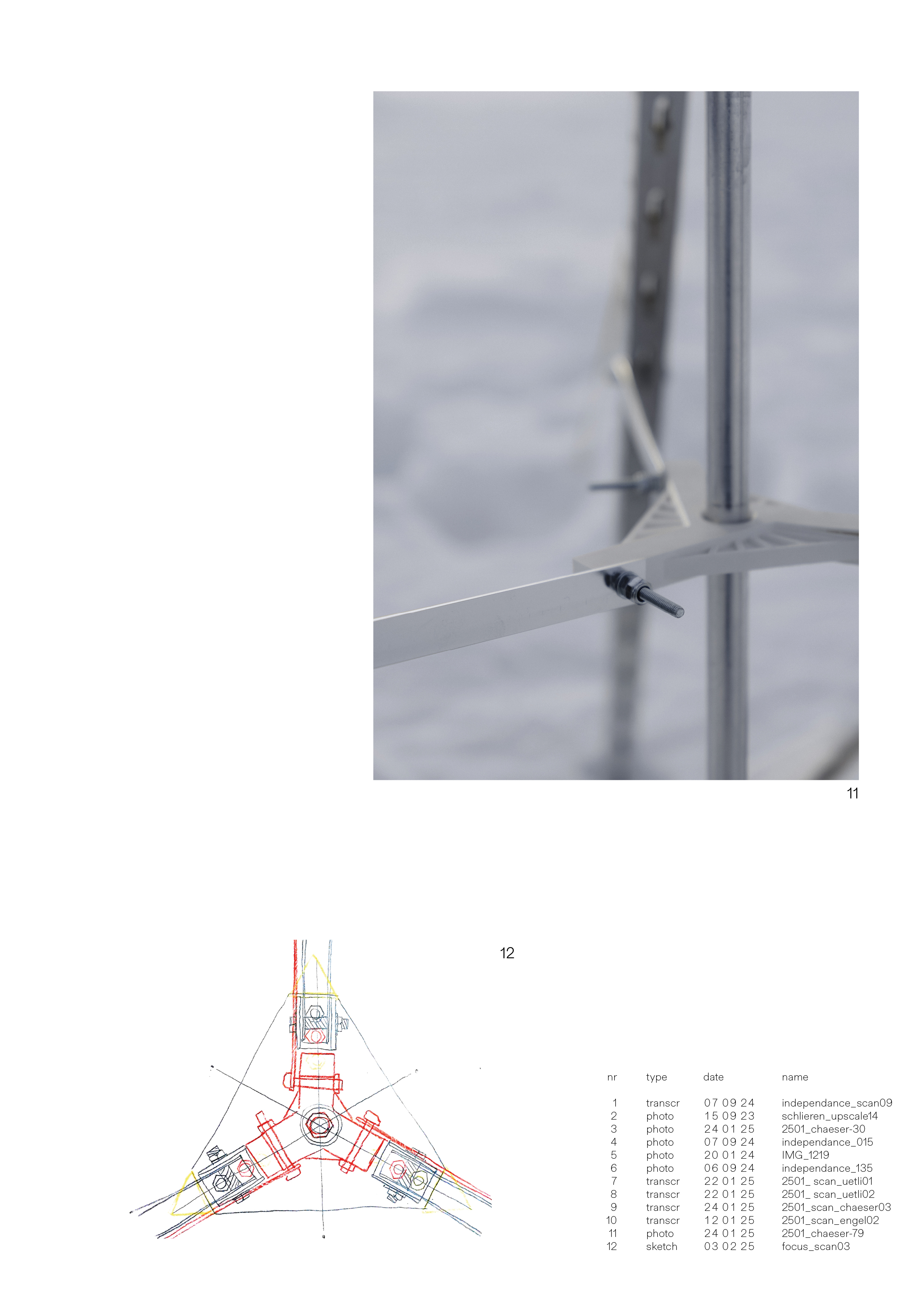 How can we materialise the feeling of being high up in the mountains, the view over a valley or the sentiment given by the landscape? What makes the landscape perceptible and feelable? Maybe not the landscape in itself, but the space surrounding, filling it - the thing it is not.