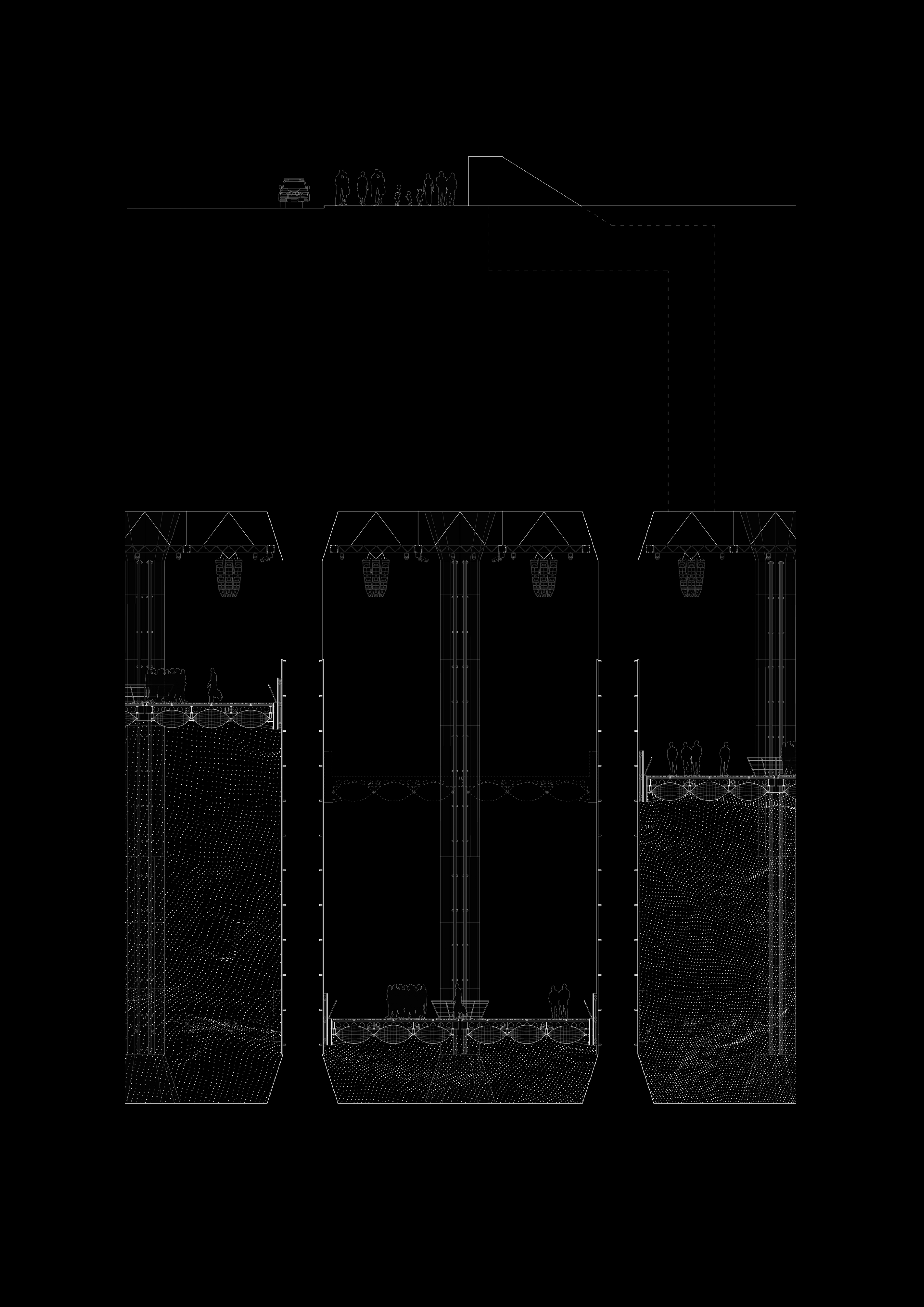 The need for water storage and its capacity is predicted to rise. The mechanism of controlled underground flooding and emptying of reservoirs might soon be a reflection of the weather conditions above. After heavy rainfall, a performance starts on a floating platform at the top of the G-Cans. The sound blares loud, the space is compressed. During the performance the platform and the water level steadily sink, altering the acoustics to that of a cathedral and revealing the sheer scale of both the unimaginably vast space and rainfall amounts.